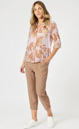 Introducing the Lino Linen Blend Tapered Pant! Cousin of our famous Sarah linen pant. Enjoy the clean silhouette of a flat front waistband paired with belt loops that offer both style and functionality, Flat front pockets to avoid extra bulk. Perfectly placed pin tucking for a slightly tapered hem, creating a slimming look.