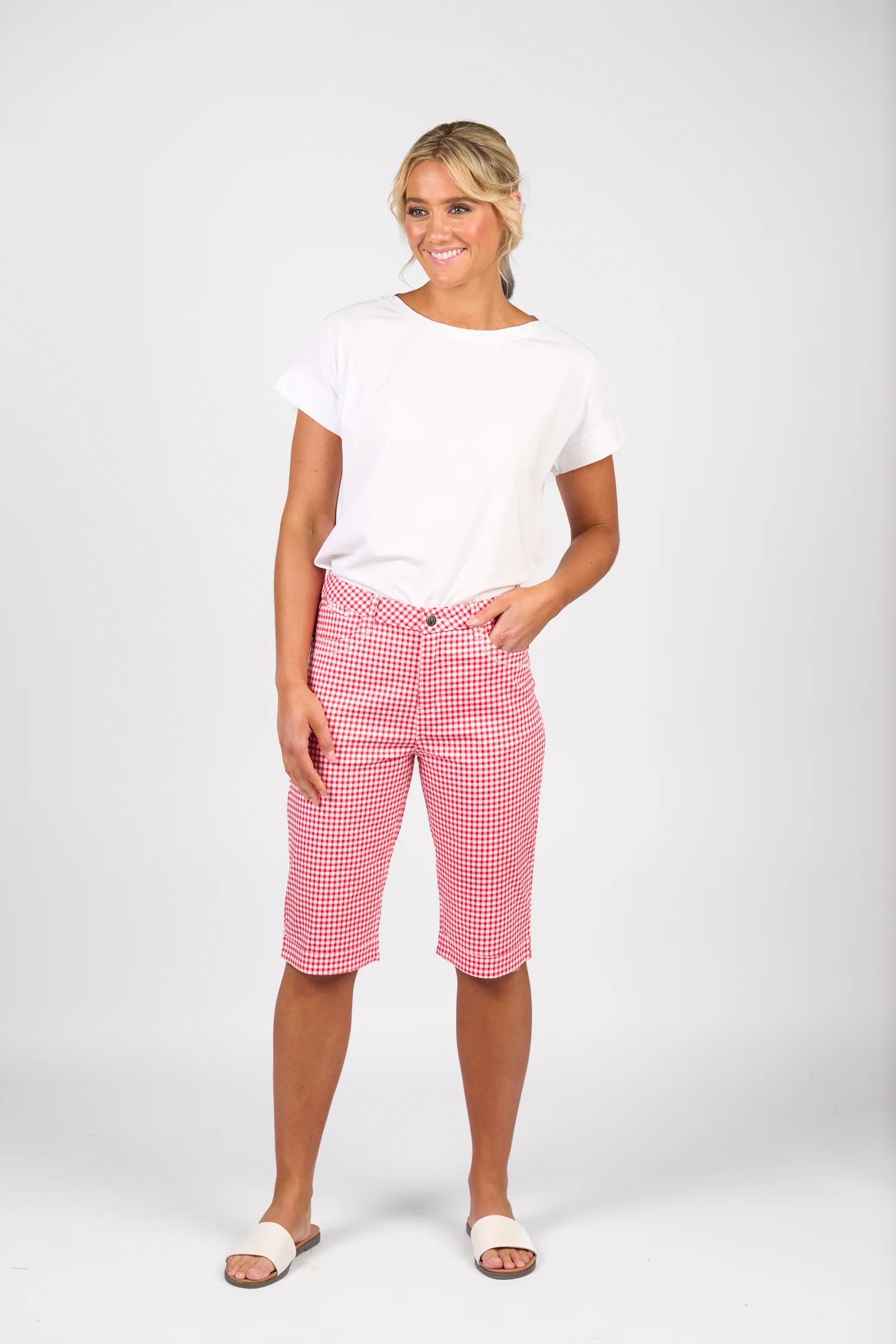 These printed straight-leg shorts are made from a lightweight cotton-elastane stretch fabric for a comfortable, flexible fit. Designed with a zip fly, front cutaway pockets, a coin pocket, and back patch pockets, it offers a polished look with easy, everyday wearability.